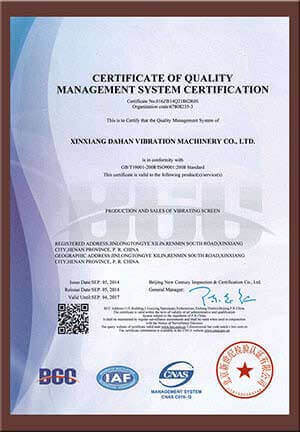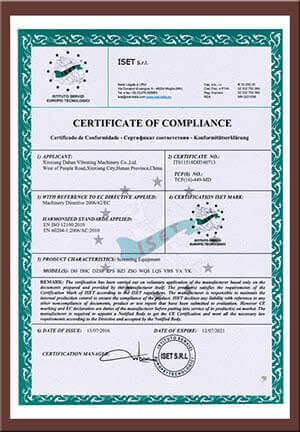 大漢螺旋輸送機(jī)設(shè)備及振動篩設(shè)備先后通過了ISO質(zhì)量體系認(rèn)證和歐盟CE認(rèn)證