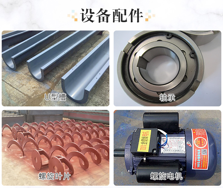 水泥螺旋輸送機(jī)其主要的配件由:螺旋葉片,電機(jī),軸承,螺旋槽等其螺旋葉片和電機(jī)的價格比列是比較高的,螺旋葉片的材質(zhì)有三種碳鋼,錳鋼,不銹鋼三種錳鋼是耐磨的一種所以價格各上會比較貴一點(diǎn)。