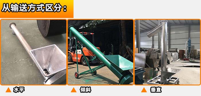 螺旋輸送機(jī)從輸送方式上可以分為:水平輸送,垂直輸送,以及傾斜輸送三種。