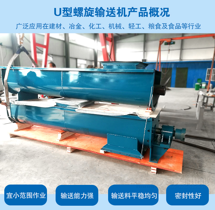 U型螺旋輸送機(jī)是螺旋輸送機(jī)的一種,適宜小范圍作業(yè)。U型螺旋輸送機(jī)因其輸送能力強(qiáng),輸送料平穩(wěn)均勻,不會造成揚(yáng)塵、不對周邊環(huán)境進(jìn)行污染,且能耗小,密封好,利屬于設(shè)備,近年來已經(jīng)被廣泛應(yīng)用在建材、冶金、化工、機(jī)械、輕工、糧食及食品等國民經(jīng)濟(jì)的很多領(lǐng)域。