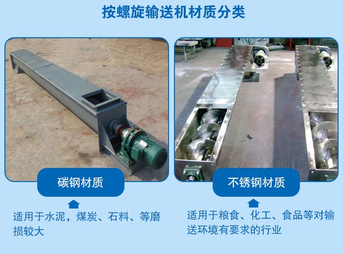 2、不銹鋼U型螺旋輸送機(jī)-主要適用于糧食、化工、食品等對輸送環(huán)境有要求的行業(yè),清潔度高,并且不會對物料產(chǎn)生污染,使用時間長,但是造價相對較高。