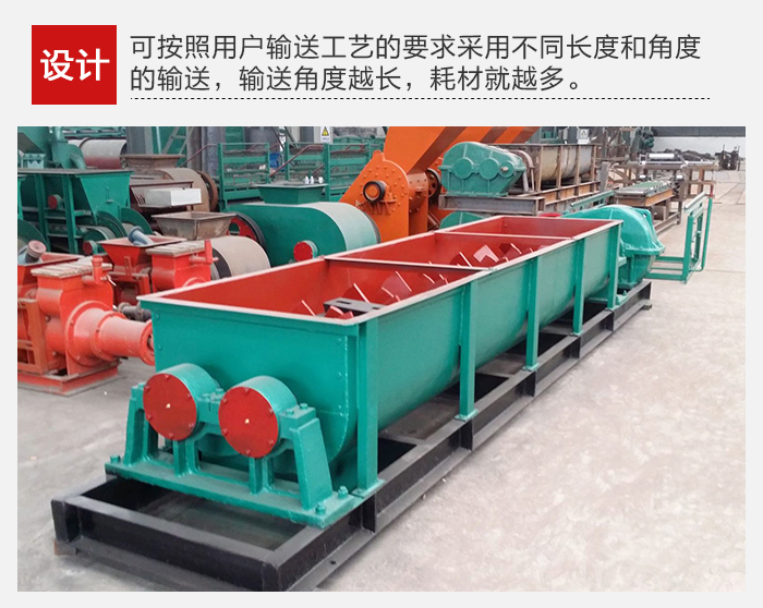 雙螺旋輸送機(jī)可以按照用戶輸送工藝的要求采用不同長(zhǎng)度和角度的輸送,輸送角度越長(zhǎng),耗材就越多,選擇的電機(jī)功率及板材厚度也是不同的。而且設(shè)備可以按照用戶輸送物料的特性設(shè)計(jì)為有軸和無(wú)軸兩種,這兩者在耗材上和加工上是不同的,所以價(jià)格也會(huì)有差異。