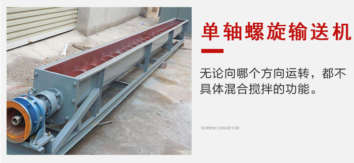 單軸螺旋輸送機(jī)無論向哪個方向運(yùn)轉(zhuǎn),都不具體混合攪拌的功能,當(dāng)物料放入進(jìn)料口時,會自動將物料轉(zhuǎn)動到中間,混合到一起。