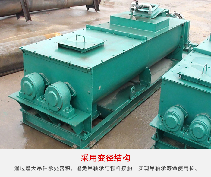 雙軸螺旋輸送機(jī)采用變徑結(jié)構(gòu),通過增大吊軸承處容積,避免吊軸承與物料接觸,實(shí)現(xiàn)吊軸承壽命可達(dá)到兩年以上。