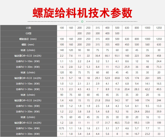 附 螺旋給料機參數(shù)表: