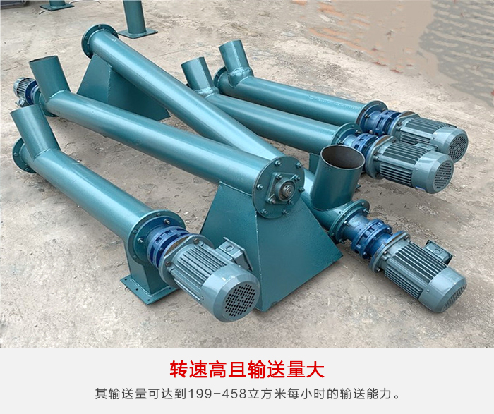 (2)傾斜螺旋輸送機(jī)的輸送量大,其輸送量可達(dá)到199-458(m3/h)的輸送能力,的同時(shí)螺旋輸送機(jī)的轉(zhuǎn)速也相對(duì)較高、其特別適用于傾斜和垂直輸送的輸送角度。