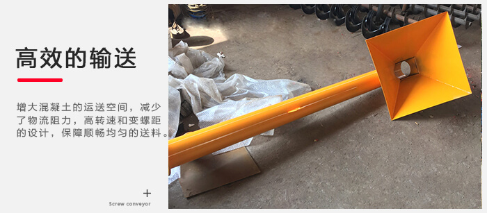 移動式螺旋輸送機采用新型懸掛式中間吊軸承架,增大混凝土的運送空間,減少了物流阻力,加上小直徑,高轉(zhuǎn)速和變螺距的設計,保障順暢均勻的送料。