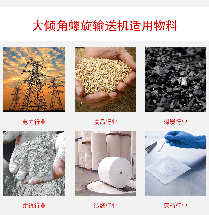 大傾角螺旋輸送機的適用范圍非常廣泛,例如糧食工業(yè)、建筑材料工業(yè)、化學工業(yè)、機械制造業(yè)、交通運輸業(yè)等。其適用于各種粉狀、粒狀、小塊狀物料,還有可以輸送粘性,帶狀易纏繞的特殊型號。粒物料如谷物、豆類、面粉等食品類,干水泥、粘土、沙子等建筑類,鹽類、堿類、化肥等化學類,還有礦石等其他類別,粘性物料如濕水泥等,易纏繞物料如生活垃圾等??傊髢A角螺旋輸送機被廣泛應用于各行各業(yè),可見其重要性,也印證了它是有價值的。