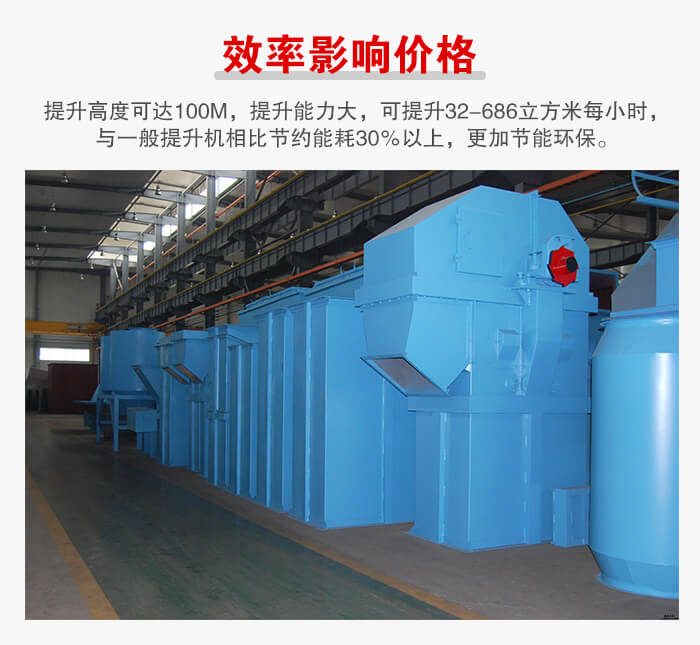 任何一臺設(shè)備都是用來投入生產(chǎn)的,所以效率對于衡量一臺設(shè)備的價格至關(guān)重要,因為效率高,對用戶的入投使用就越有利。大漢膠帶斗式提升機提升效率高,提升高度可達100m,提升能力大,可提升32-686m3/h,而且大漢膠帶斗式提升機與一般提升機相比節(jié)約能耗30%以上,更加。