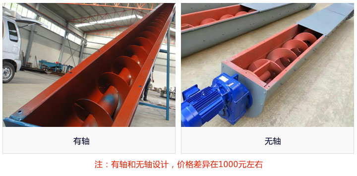 絞龍螺旋輸送機(jī)按物料屬性不同所使用的螺旋葉片不同可分有軸和無軸兩種,采用的設(shè)計(jì)理念也就不同,同種情況下,無軸的要比有軸的生產(chǎn)難度高,因此價(jià)格也會存在1000元左右的偏差。