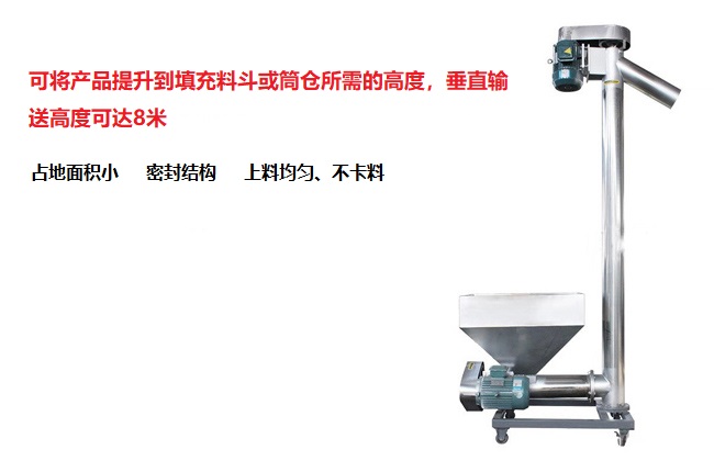 可將產(chǎn)品提升到填充料斗或筒倉所需的高度,垂直輸送高度可達(dá)8米