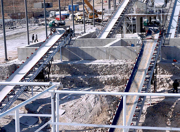TDII型帶式輸送機的系列部件可滿足水平及傾斜輸送的要求也采用帶凸弧,凹弧段與直線段組合的輸送行駛。輸送機允許輸送的物料塊度取決于帶寬,帶速,槽角和傾角,也取決于大塊物料出現(xiàn)的頻率。各種帶寬適用的大塊度,本系列推薦按下列表選取。當(dāng)輸送硬巖時,帶寬超過1200M后,一般應(yīng)限制在35MM,而不能隨寬的增長而加大。