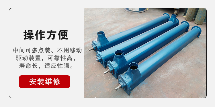 管型螺旋輸送機(jī)是利用螺旋旋轉(zhuǎn)而推移物料的連續(xù)輸送設(shè)備,適用輸送面粉、谷類(lèi)、水泥、化肥、灰渣、沙子、石子、煤粉、小塊煤等物料。由于機(jī)體內(nèi)有效流通面積小,螺旋輸送機(jī)不宜輸磅易變質(zhì)的、粘性太大、易結(jié)塊的物料。