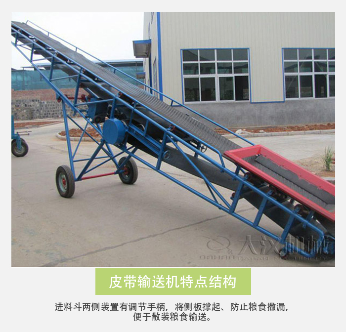 主要用于裝卸地點(diǎn)經(jīng)常變更動的場所,如:港口、碼頭、車站、煤場、倉庫、建筑工地、沙石料場、農(nóng)場等以及散糧、包糧的輸送、堆垛、裝卸車等作業(yè),用來短途運(yùn)輸及裝卸散料或單件重量100公斤以下的成件物品。