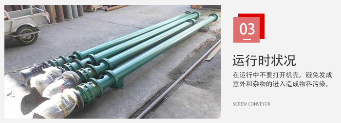 帶使螺旋輸送機在運行中不要輕易地,打開帶使螺旋輸送機的機殼,第一是為了避免意外的發(fā)生,第二也是為了避免雜物滑落到機殼內(nèi)而造成物料的污染。
