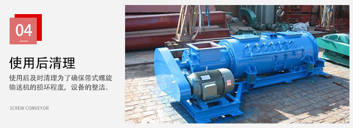 在帶使螺旋輸送機的,每次使用結(jié)束后,要注意螺旋輸送機的清理工作,這也是為了確保帶式螺旋輸送機的損壞程度,以及下次使用時物料的干凈。