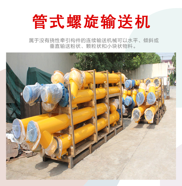簡介:管式輸送機是一種電機帶動螺旋回轉(zhuǎn),進而推移物料實現(xiàn)輸送目的的輸送設(shè)備