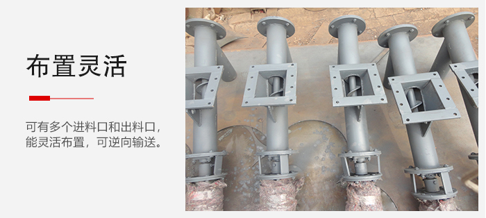 3、可有多個進料口和出料口,能靈活布置,可逆向輸送,因此可以同時向兩個方向輸送物料;