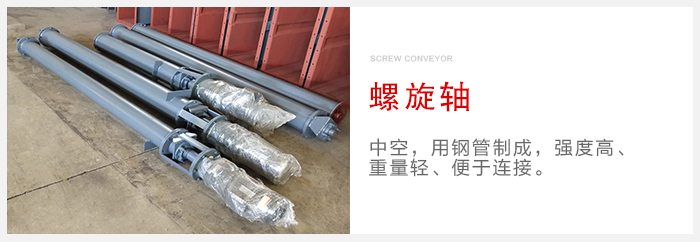 螺旋軸:中空,用鋼管制成,強度高、重量輕、便于連接。在軸與軸的連接處和安裝軸承處使用一小段實心軸。在連接處將實心軸伸入空心軸內(nèi)用高強度的螺栓按相互垂直方向?qū)Υ┛招妮S與實心軸來固定連接螺旋軸。