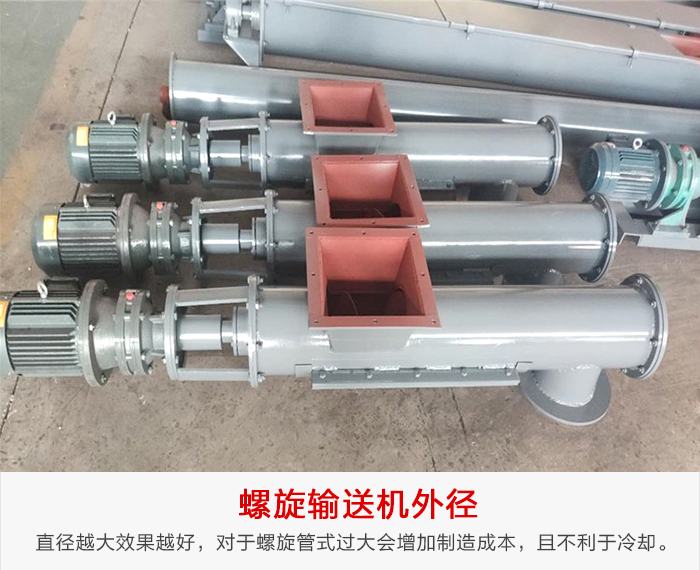 直徑越大效果越好,但是對于開式管式輸送機,螺旋外徑過大會增加制造成本,且不利于冷卻。此外,外徑值沒有必要一定取500的整數(shù)倍。