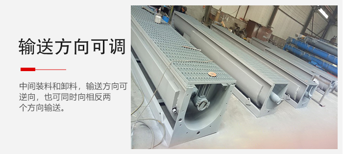 2、中間裝料和卸料,輸送方向可逆向,也可同時(shí)向相反兩個(gè)方向輸送;