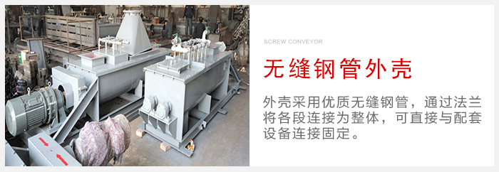 1、螺旋輸送機(jī)外殼采用優(yōu)質(zhì)無縫鋼管,通過法蘭將各段連接為整體,可直接與配套設(shè)備連接固定,無需地基基礎(chǔ);