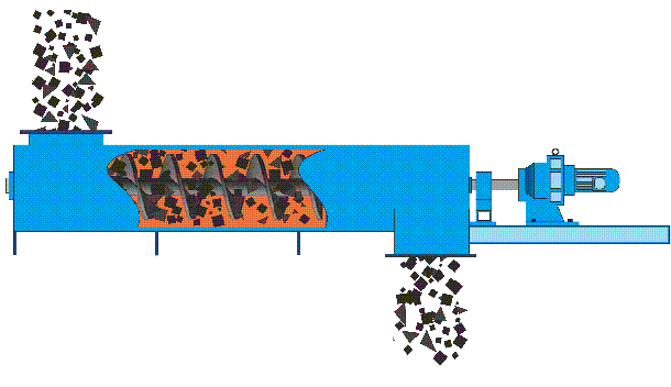 水平管式螺旋給料機(jī)適合多點(diǎn)裝料與卸料,輸送過程中可同時(shí)完成混合、攪拌或冷卻功能。對(duì)超載敏感,易堵塞;對(duì)物料有破碎損耗,適用于水平或微傾斜(20º以下)連續(xù)均勻輸送松散物料,工作環(huán)境溫度為-20—+40℃,輸送物料溫度為-20—+80℃。其轉(zhuǎn)速相對(duì)于垂直輸送機(jī)要低,主要用于水平或小傾角輸送物料,輸送距離一般不大于70米。