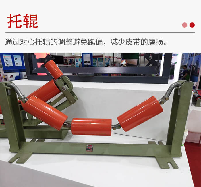 作用:①用戶可以通過(guò)對(duì)心托輥的調(diào)整,來(lái)決定橫向位置,避免物料在輸送過(guò)程中跑偏,②緩沖托輥裝在受料處,以減小物料對(duì)皮帶的沖擊,減少皮帶的磨損。